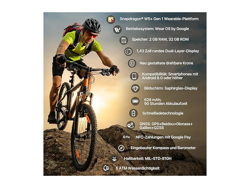 • Αισθητήρες GPS, Αλτίμετρο, Γυροσκόπιο, Επιταχυνσιόμετρο, Καρδιακών Παλμών, Οξύμετρο, Παρακολούθηση 'Υπνου