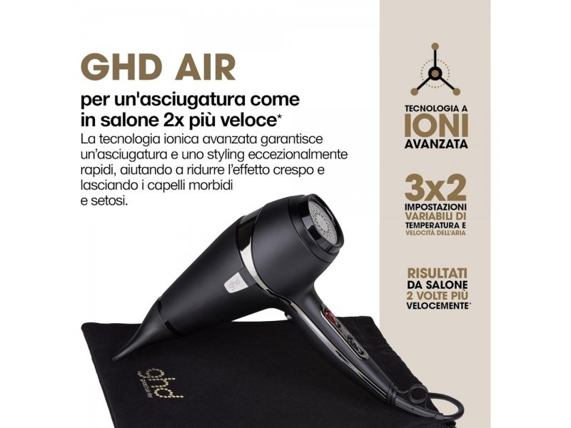 Το επαγγελματικό σεσουάρ Ghd Air®, διαθέτει πανίσχυρο επαγγελματικό μοτέρ 2100W και αποσπώμενο φίλτρο που δημιουργούν ροή αέρα υψηλής πίεσης για απίστευτα γρήγορο στέγνωμα, ενώ η προηγμένη τεχνολογία ιόντων μειώνει το φριζάρισμα για finish κομμωτηρίου στο μισό χρόνο.