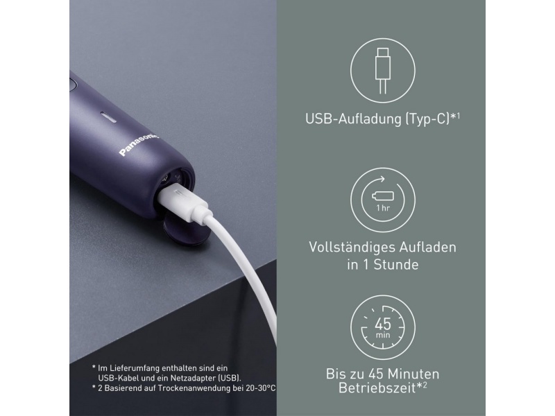 - USB-C charging: this portable electric shaver can be charged on the go via USB Type-C for 45 minutes of shaving time after just one hour of charging