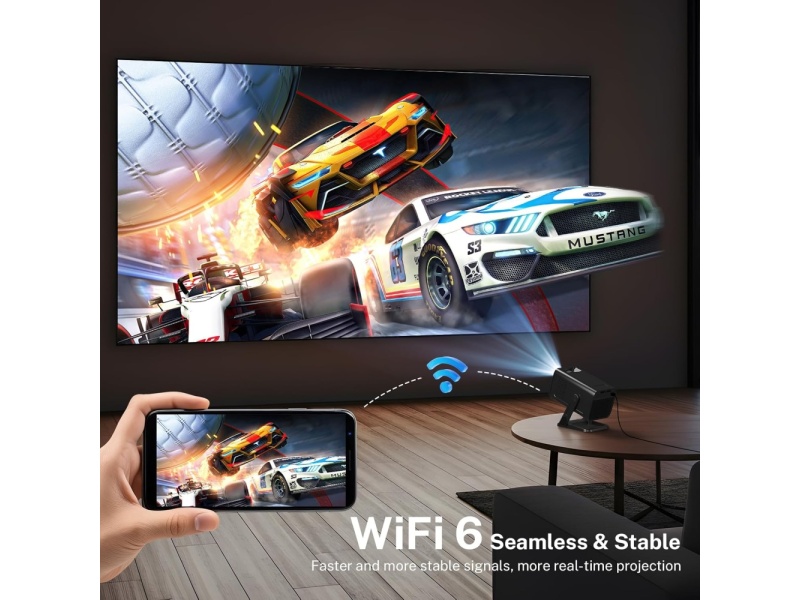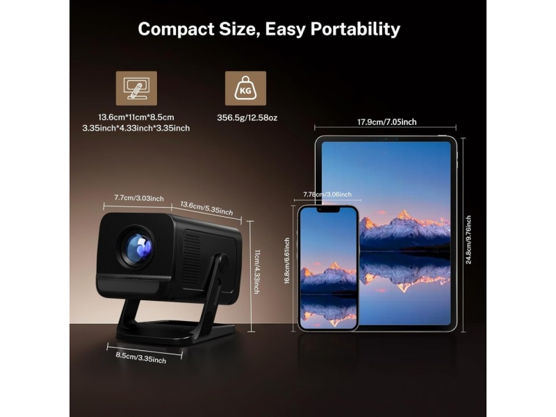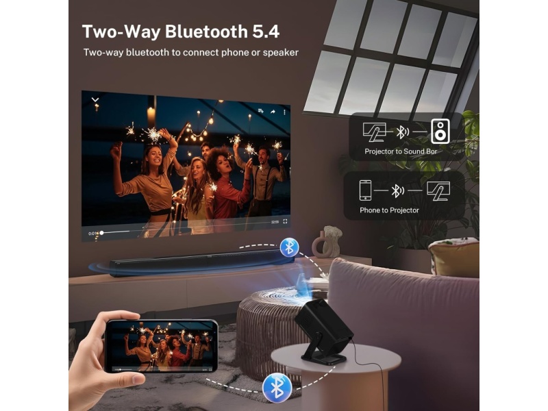 - Ultra-fast WiFi 6 & Bluetooth 5.4: The VisualCube 300 portable Bluetooth projector black is equipped with dual-band WiFi 6, which supports both 5G and 2.4G networks and offers speeds up to 3 times faster than conventional WiFi 5 for a smooth performance increase of 300%. The mini projector also features the latest Bluetooth 5.4 chip, which allows easy and stable connection with a variety of external speakers and headphones