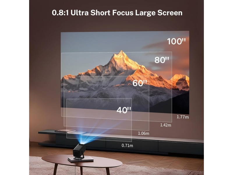 - [Ultimate Space Utilization] The LYNCAST video projector with an improved 0.8:1 ultra-short throw ratio delivers a 100-inch projection from just 1.7 meters away. The Mini VisualCube 300 projector has built-in speakers and supports projection sizes from 40 to 100 inches. Designed for bedrooms, dorm rooms, RVs or compact apartments, it immerses you in a huge screen viewing experience in small spaces