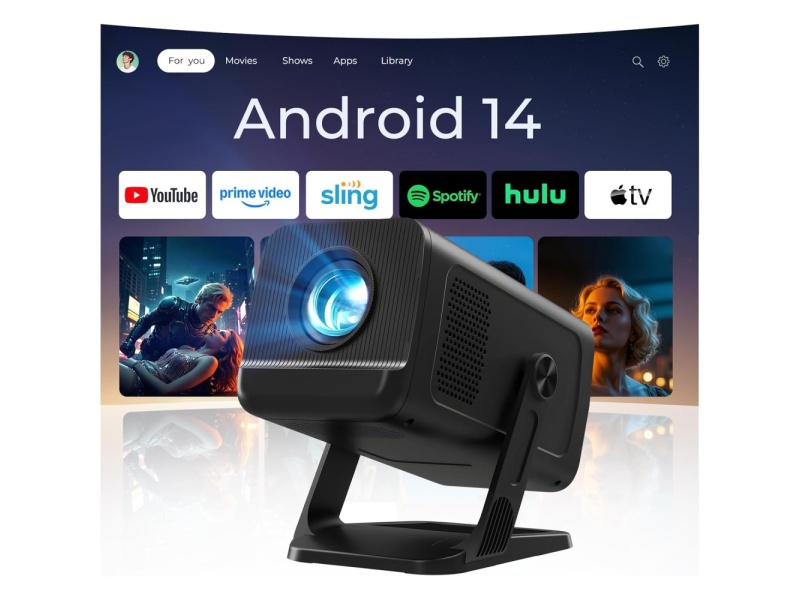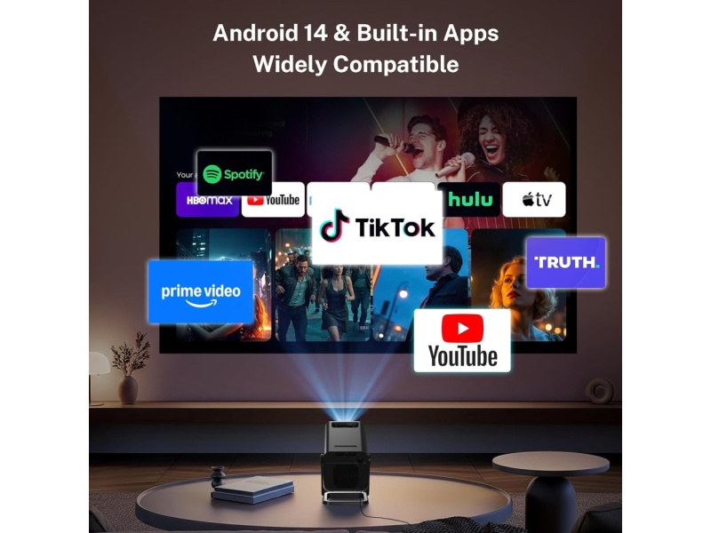 - Android 14 OS, built-in streaming apps: Enter a world of endless entertainment with the VisualCube 300 portable projector. Enjoy true HD 1080p and 4K support with this home theater projector