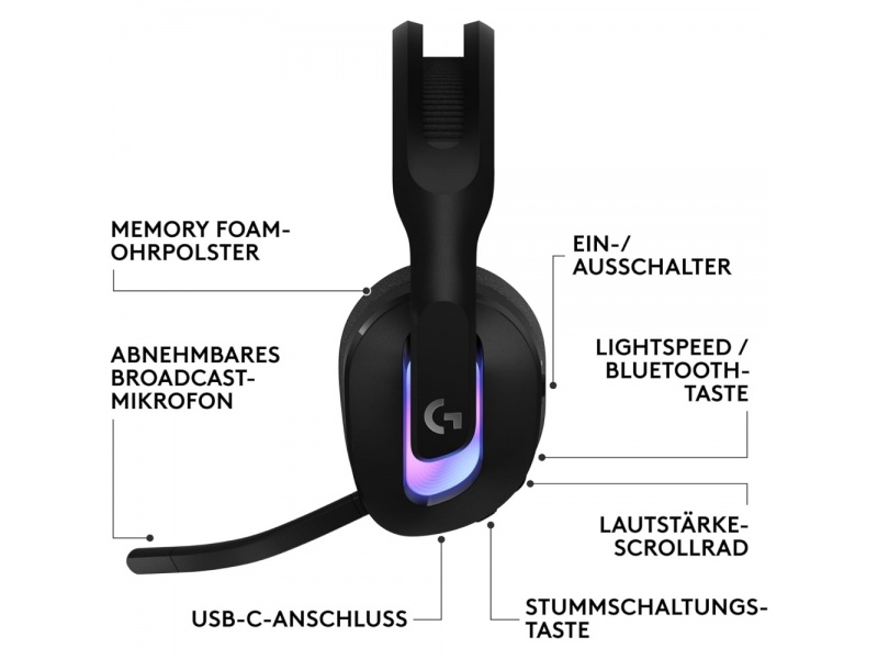 Logitech G522 Lightspeed Ασύρματο Over Ear Gaming Headset με σύνδεση USB / Bluetooth black
