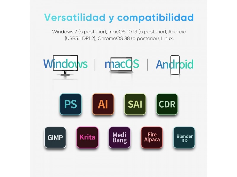 - Incredibly Versatile: The Artist 13.3 Pro V2 is compatible with Windows 7 (or later), macOS 10.13 (or later), Android (USB3.1 DP1.2), Chrome OS 88 (or later), and Linux. Supports popular digital art software such as Adobe Photoshop, Illustrator, SAI, CDR, GIMP, Krita, MediBang, FireAlpaca, Toonboom, Maya, Blender3D, etc.