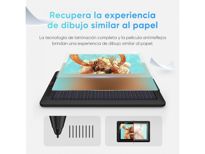 - Anti-Glare Film Laminated Display: The fully laminated screen and anti-glare coating reduce the gap between pen and screen, minimizing reflections for uninterrupted creative expression.